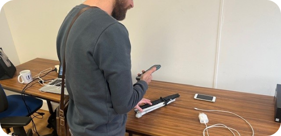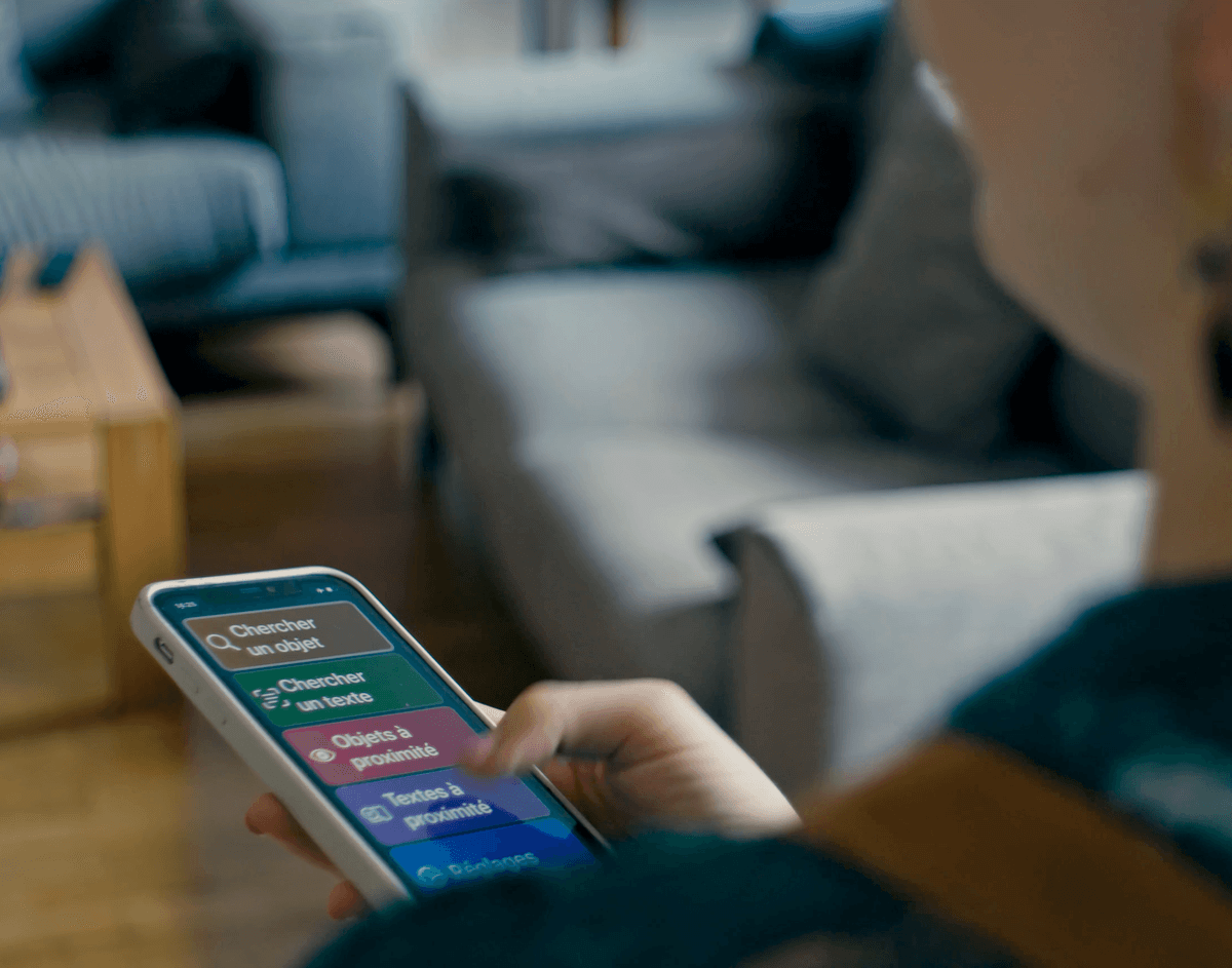 “Vous êtes devant votre bureau et vous êtes à la recherche de vos écouteurs que vous devez retrouver à l’aide de la fonctionnalité “Chercher un objet”, un signal sonore vous aide à le localiser pour le saisir. ”