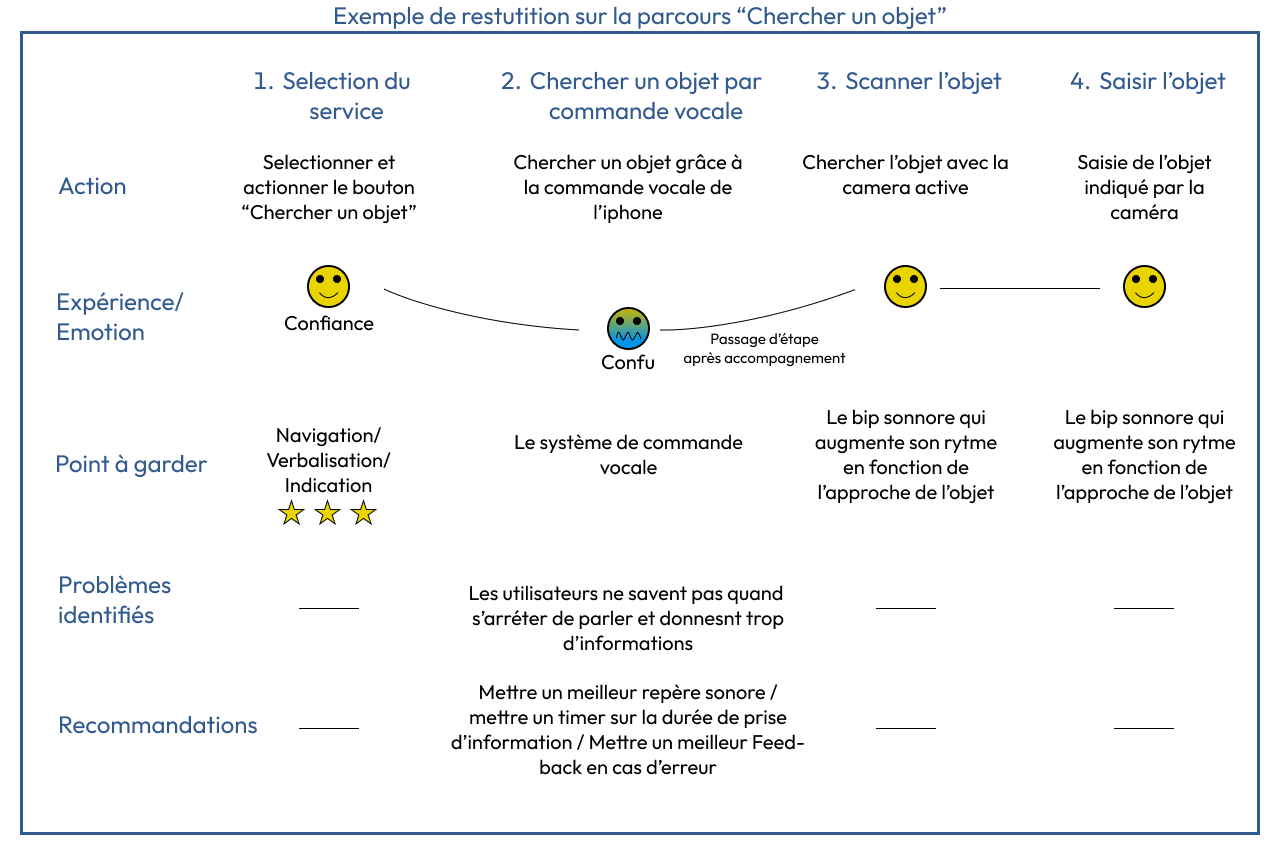 J’ai pu présenter à l’équipe les forces et les faiblesses de chaque étape pour chacune des fonctionnalités et faires de propositions.